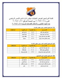 قائمة المرشحين لخوض انتخابات مجلس إدارة نادى الشمس الرياضى للدورة 2025-2029 يوم الجمعة الموافق 17-10-2025 بعد انتهاء الطعون والأحكام القضائية بتاريخ 15-10-2025