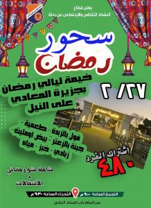 أعلن النادي عن تنظيم رحلات مميزة خلال شهر رمضان المبارك تشمل إفطارًا وسحورًا في أجواء رمضانية خاصة إلى جانب رحلات احتفالية بمناسبة عيد الفطر المبارك.