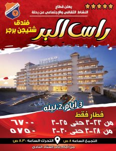 أعلن النادي عن تنظيم رحلات مميزة خلال شهر رمضان المبارك تشمل إفطارًا وسحورًا في أجواء رمضانية خاصة إلى جانب رحلات احتفالية بمناسبة عيد الفطر المبارك.